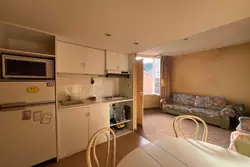 Idéal pied-à-terre, aperçu mer, au calme, en dernier étage d'une résidence bourgeoise sécurisée par digicolde, studio à rénover entièrement, beaucoup de lumière naturelle, composé d'une pièce avec fenêtre et grand rangement, kitchenette aménagée ( à moderniser ) avec plaque de cuisson et réfrigérateur, salle de douches - toilette ( toilette neuf) avec fenêtre. Commerces, bus, plage à pied, parking communal à proximité.